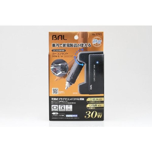 可倒式プラグでコンパクトに収納。ファンレス小型インバーター。 AC100VとUSB電源を同時に使用することができます(消費電力合計 30Wまで)。 5種類の安全保護回路を搭載。 |