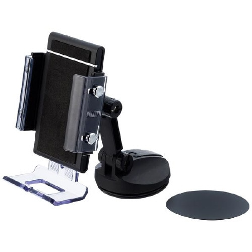 大きな手帳型ケースからスリムケースまで収納できるホルダー ホルダー上部から差し込むだけでホールド 取付自在なゲル付き吸盤を採用(補助板が付属) |