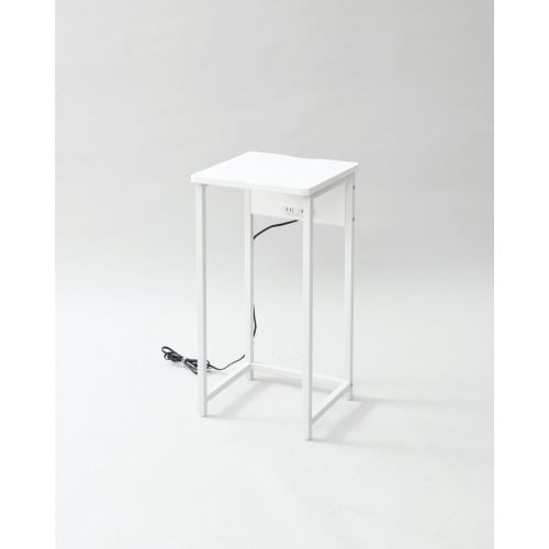 無人受付にぴったりなコンセント付電話受付台(1400W、2口)。電話のコードは脚に沿って固定できるため、正面から見てもコードが目立ちにくいスッキリした仕様。