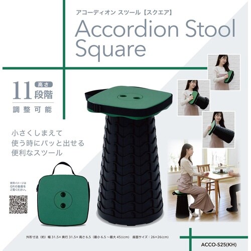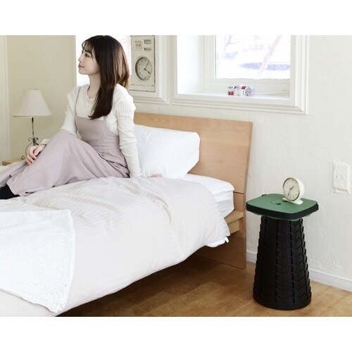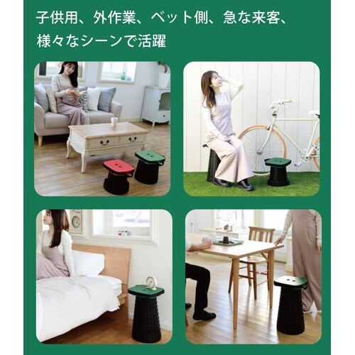 小さくしまえて、使う時にパッと出せるスツール。10から45cmの間で11段階に高さを変えられる。手持ち、肩掛けなど持ち運び便利。 |