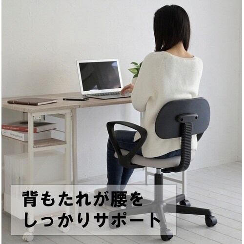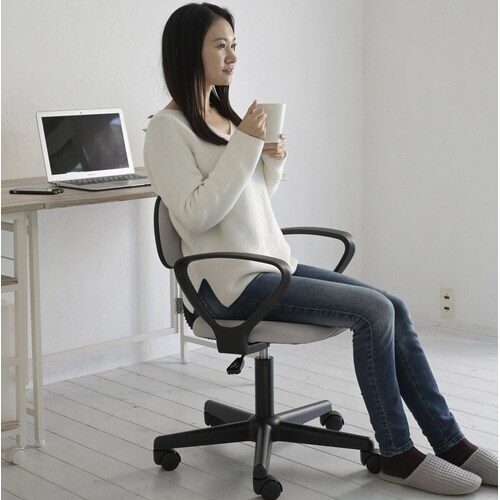 机の下に収まりやすい肘なしタイプのOAチェア。レバー操作で簡単昇降。背もたれがしっかり腰をサポート。背座のクッション材にはウレタンフォームを使用。肘付き。