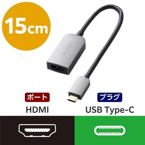 USB Type−C − HDMI 変換 ( USB−C プラグ to HDMIポート×1 ) 15cm 4K 60Hz シルバー ECAD−CHDMIQGM3