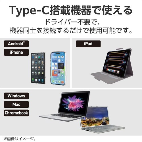 パソコンやスマートフォンなどの映像をディスプレイなどに出力できる、USB Type−C(TM)ポートをHDMI(R)ポートに変換するアダプターです。 |