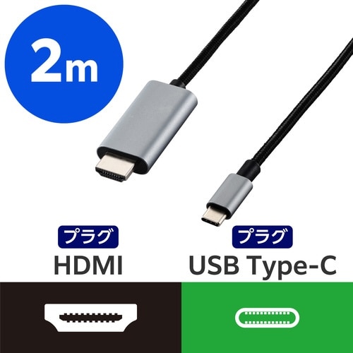 USB Type−C − HDMI 変換ケーブル ( USB−C プラグ to HDMIプラグ ) 2m 4K 30Hz 高耐久 メッシュケーブル ブラック ECCAC−CHDMI20B