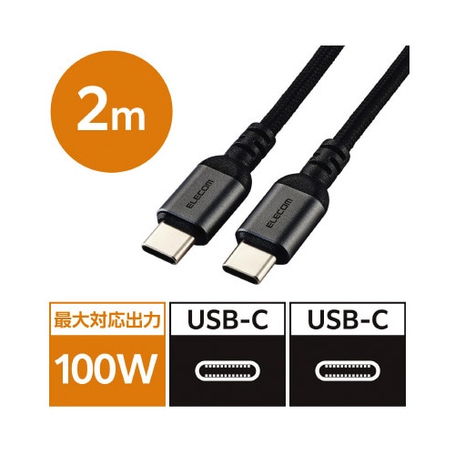 タイプCケーブル 2m 【USB Type C to C】 PD 100W 急速充電 高耐久 ナイロンメッシュ アルミコネクタ ブラック MPA−CCECAN20BK