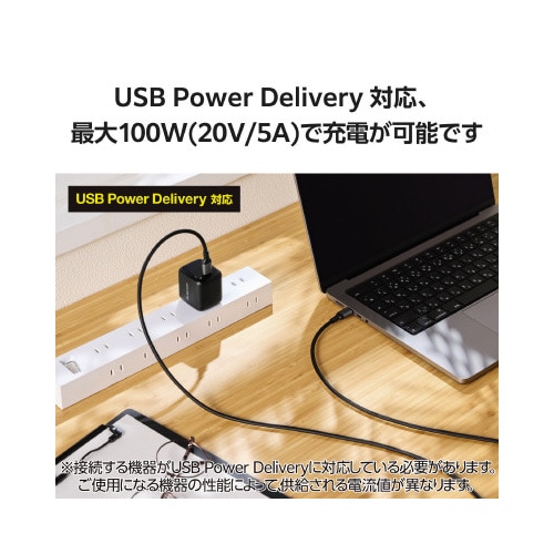スマートフォンもパソコンも、これ1本で高速充電!USB2.0、USB Power Delivery(最大100W)対応のUSB Type−C(TM)ケーブル。 |