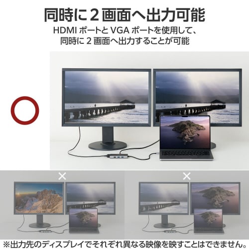 映像も音声も、10ポートをこの1台に。薄型ノートパソコンの機能を拡張する、Type−C接続ドッキングステーションです。 |
