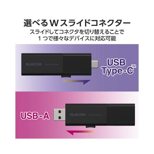 SSD 外付け 500GB USB3.2Gen1 読込最大420MB 秒 USBメモリ型 スライド式 高速 Type−C USB−A 両対応 ブラック
