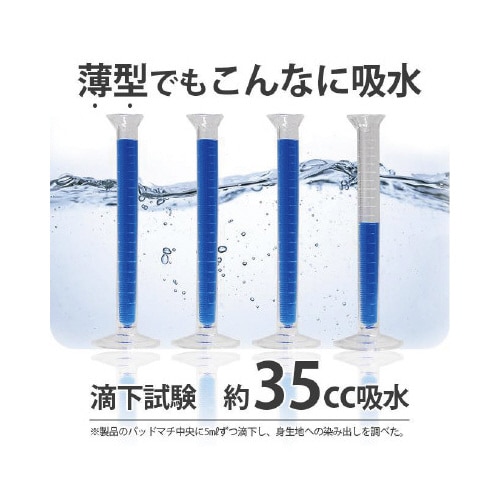 吸水部分が本体生地と同系色でバレにくい。外から見えない前寄りパッド。5層の吸水パッドで薄型でも高い吸水性。お腹やお尻まわりをすっぽりと包み込む深ばきタイプ。 |