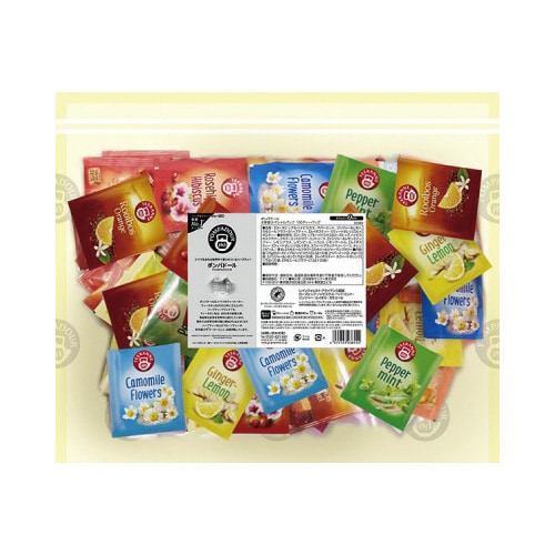 カモミールフラワー、ローズヒップ&ハイビスカス、ペパーミント、ジンジャーレモン、ルイボスティースウィートオレンジの計5種類×20袋のアソートです。 |