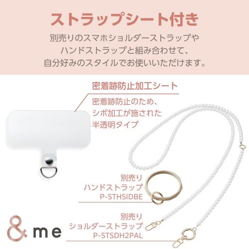 エレコム iPhone 16 Pro ハイブリッドケース &Me オーロラ ストラップシート付属 ホワイト 8422-4767