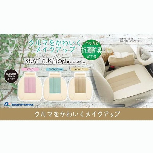 クルマをかわいくメイクアップ!レザー調クッションいつも清潔!抗菌防臭加工済ストッパー付きでクッションのズレ落ち防止! |