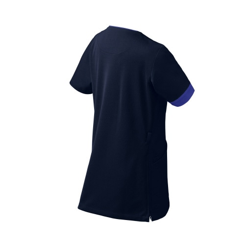 スリットとしての機能もあるので、しゃがんだりする姿勢の時も足さばきが良く、動作がスムーズになり、ストレスなく快適にお仕事していただけます。デザイン性と機能性を兼ね備えた男女兼用のジップスクラブです。 |