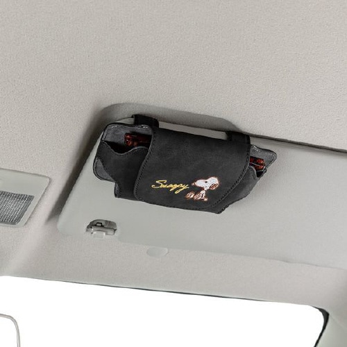ヌバック調の素材にワンポイントの刺繍がエレガントスヌーピーデザインのサングラスケース高級感のあるヌバック調素材を使用 サンバイザーに差し込むだけの簡単取付け マグネットのフタで出し入れスムーズ |