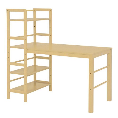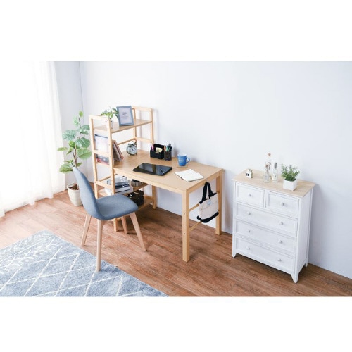 天然木を使用したデスク。ラックは可動棚なので書類に合わせて高さを変えられます。 |