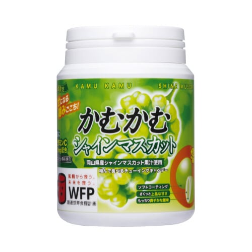 岡山県産シャインマスカット果汁使用。1粒にビタミンC20mg配合。 |