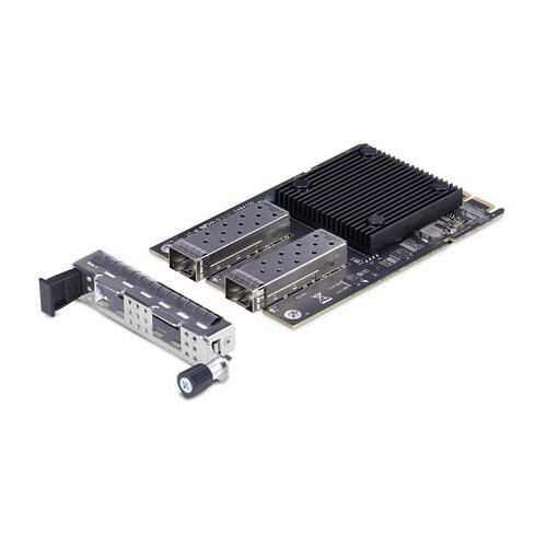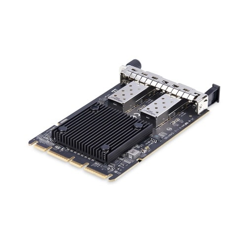 デュアル10Gbps SFP+ポート搭載し、サーバーやワークステーションに高性能ネットワーク接続機能を増設。光ファイバーと銅線の両方に対応 |