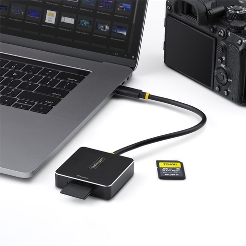 SD Express(SD7.1)、SDHC、SDXCなどに対応。USB−C対応デバイスに接続し、メモリーカードのデジタルコンテンツへスピーディーにアクセス可能 |