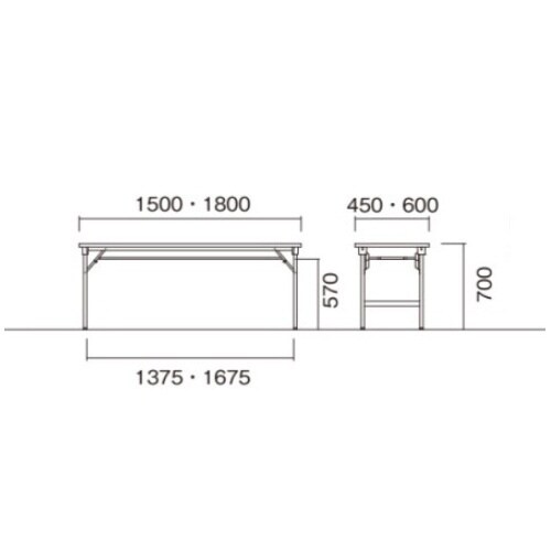 アルミ製の脚部を使用した折り畳みテーブル。スチール仕様の商品と比べて軽く運びやすいのが特徴です。棚付きモデルで、積み重ね時の傷を防止する樹脂カバーもついています。 |