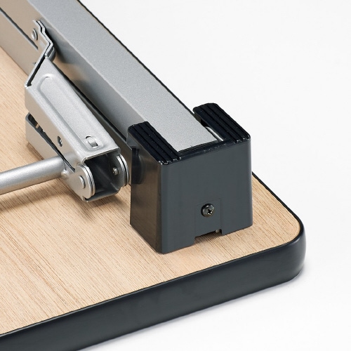 アルミ製の脚部を使用した折り畳みテーブル。スチール仕様の商品と比べて軽く運びやすいのが特徴です。積み重ね時の傷を防止する樹脂カバーもついています。 |