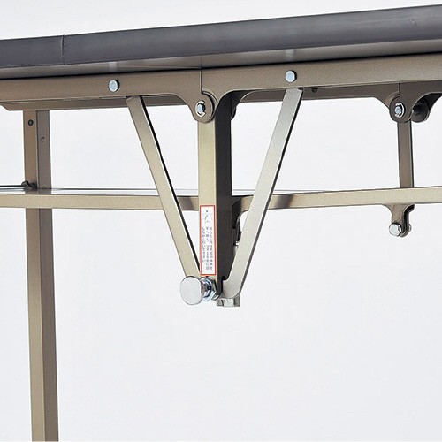 天板を折り畳むタイプの折り畳みテーブル。天板の開閉機構はセーフティロック機能付きで、手を挟まないように設計。開閉操作用のツマミで折り畳み操作。脚部にはキャスターがついており、移動も楽に行えます。 |