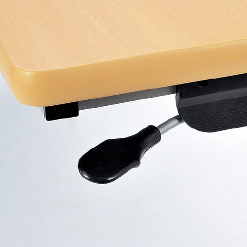 レバー操作で天板フラップするスタックテーブル。平行スタックでテーブルを一列に収納。スチール製棚付き。ストッパー機能付きのキャスターで楽に移動、固定。アジャスト機能も付いてテーブル高さの微調整も可能! |