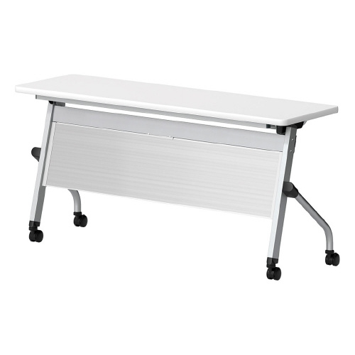 HFLスタックテーブル ソフトエッジ巻 幅1500mm×奥行450mm×高さ720mm 天板:ホワイト、脚部:シルバー HFL−S1545P−WH 1台【メーカー直送/お客様組立て】
