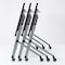 レバー操作で天板がフラップするスタックテーブル。平行スタックで一列に収納。スチール製の棚付き。ストッパー付きキャスターで楽に移動、固定。アジャスト機能も付いて高さの微調整も可能。 |