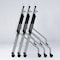 レバー操作で天板がフラップするスタックテーブル。平行スタックで一列に収納。スチール製の棚付き。ストッパー付きキャスターで楽に移動、固定。アジャスト機能も付いて高さの微調整も可能。 |