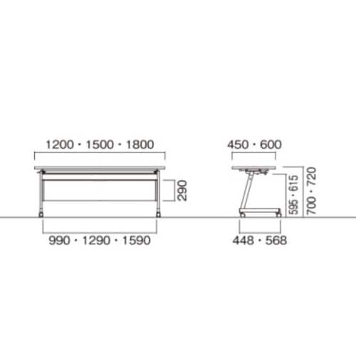 レバー操作で天板フラップするスタックテーブル。平行スタックで一列に収納。スチール製棚付き。L字足で脚抜けが良く、ストッパー付きキャスターで楽に移動、固定。アジャスト機能も付いて高さ微調整も可能! |