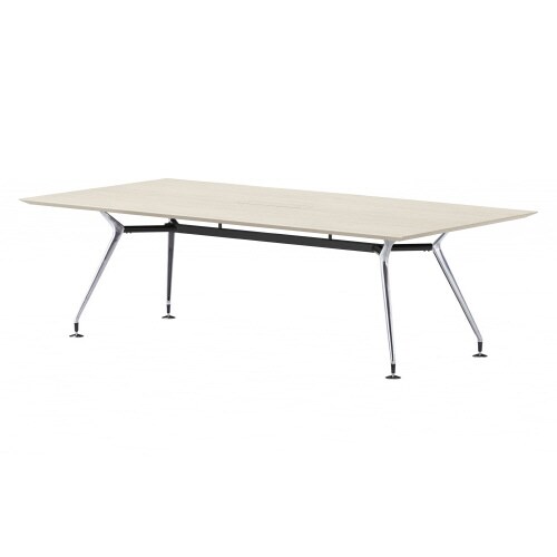 舟底テーパーエッジ天板でシャープな印象のビッグテーブル。脚部は光沢が美しいアルミダイキャスト磨き仕様。脚にはレベル調整用のアジャスター付き。指紋などの汚れが目立ちにくい抗菌仕様のメラミン化粧板です。 |