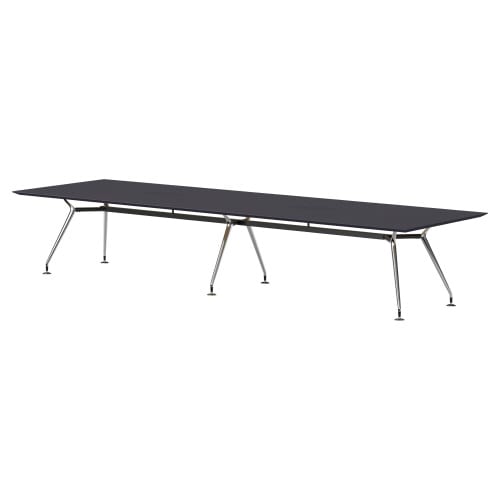 舟底テーパーエッジ天板でシャープな印象のビッグテーブル。脚部は光沢が美しいアルミダイキャスト磨き仕様。脚にはレベル調整用のアジャスター付き。指紋などの汚れが目立ちにくい抗菌仕様のメラミン化粧板です。 |