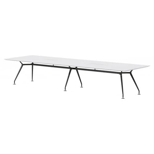 舟底テーパーエッジ天板でシャープな印象のビッグテーブル。脚部はアルミダイキャストブラック焼付塗装で高級感のある仕様。レベル調整用のアジャスター付き。指紋などの汚れが目立ちにくい抗菌メラミン化粧板。 |