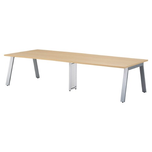 ハの字脚で安定感抜群のビッグテーブル。中間脚はワイヤリングカバー付で床からの立上げ配線を収納。脚間が広い設計。脚にはレベル調整用のアジャスター付き。指紋などの汚れが目立ちにくい抗菌メラミン化粧板。 |