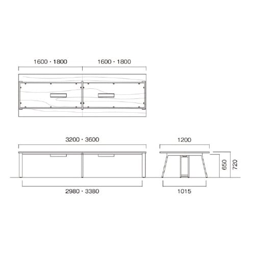 ハの字脚で安定感抜群のビッグテーブル。中間脚はワイヤリングカバー付で床からの立上げ配線を収納。脚間が広い設計。脚にはレベル調整用のアジャスター付き。指紋などの汚れが目立ちにくい抗菌メラミン化粧板。 |