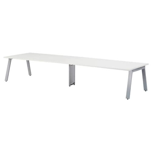 ハの字脚で安定感抜群のビッグテーブル。中間脚はワイヤリングカバー付で床からの立上げ配線を収納。脚間が広い設計。脚にはレベル調整用のアジャスター付き。指紋などの汚れが目立ちにくい抗菌メラミン化粧板。 |