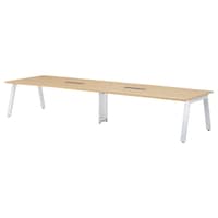 ハの字脚で安定感抜群のビッグテーブル。中間脚はワイヤリングカバー付で床からの立上げ配線を収納。脚間が広い設計。脚にはレベル調整用のアジャスター付き。指紋などの汚れが目立ちにくい抗菌メラミン化粧板。 |