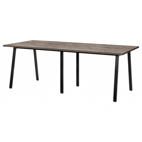 解放感と安定感のある八の字脚デザインのビッグテーブル。天板は耐水・耐熱性に優れた高圧メラミンで傷が付きにくい。脚端にはレベル調整用のアジャスター付き。指紋などの汚れが目立ちにくい抗菌メラミン化粧板。 |