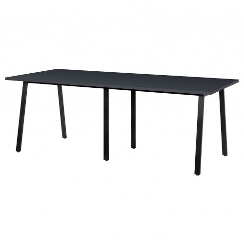 解放感と安定感のある八の字脚デザインのビッグテーブル。天板は耐水・耐熱性に優れた高圧メラミンで傷が付きにくい。脚端にはレベル調整用のアジャスター付き。指紋などの汚れが目立ちにくい抗菌メラミン化粧板。 |