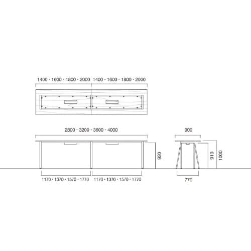 BSKビッグテーブル 幅4000x奥行900x高さ1000mm 天板:ウォールナット BSK−4090HW−WN 1台【メーカー直送/お客様組立て】
