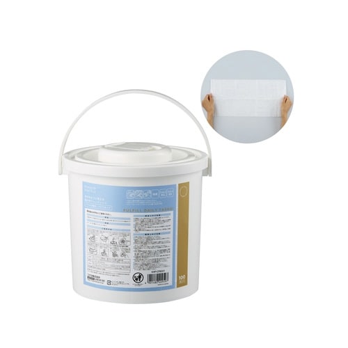 雑巾のように使える超大判の厚手ウェットシート。通常より大きなシートサイズなので面を使い分けられ、汚れの広がりを防ぎます。100枚入りの大容量バケツタイプのパッケージ。ウイルス除去成分配合。 |