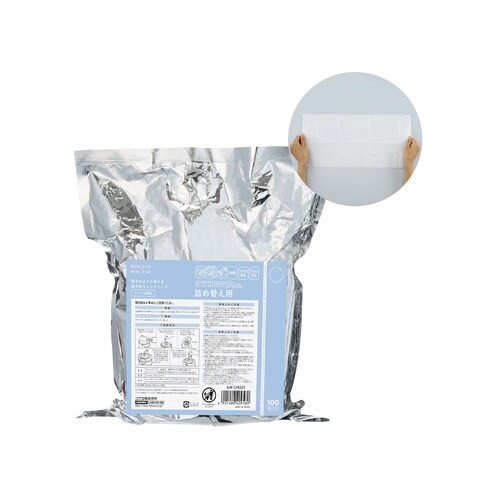 雑巾のように使える超大判の厚手ウェットシートの詰め替え用。通常より大きなシートサイズなので面を使い分けられ、汚れの広がりを防ぎます。100枚入りの大容量バケツタイプのパッケージ。ウイルス除去成分配合。 |