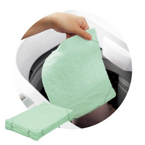 洗濯機で洗ってもほつれにくいように、縫い目を増やした布製の雑巾です。カラータイプなので用途や場所で使い分けできます。四隅の縫い糸が違う色なので通常の雑巾と見分けやすくなっています。10枚入り。緑色。 |