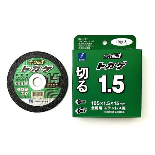 サイズ:105×1.5×15mm | 入数:10枚 | 最高使用周速度:80m/s(4800m/min) | 粒・硬度:MZ46PBF | 単位:1個…