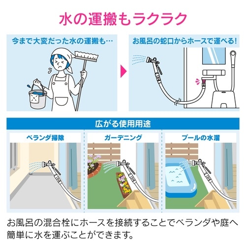 お風呂やキッチンの蛇口先端(泡沫金具ネジ部分)とホースをワンタッチでつなぐためのジョイントです。 |