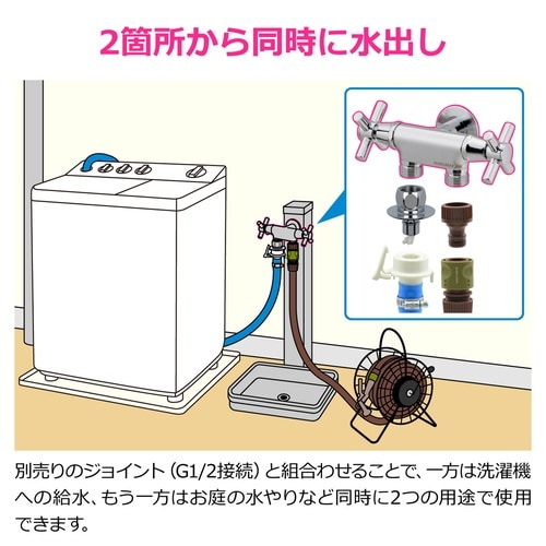 2カ所から同時に水出しができる、多用途使いにオススメな二口蛇口です。 |