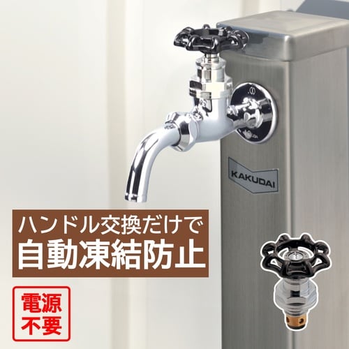 温度を自動で感知して少量の水を排出し、蛇口の凍結を防止する水栓上部です。 |