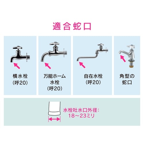 大きい蛇口(呼20)にホースをつなぐためのビス止め式ジョイントです。 |