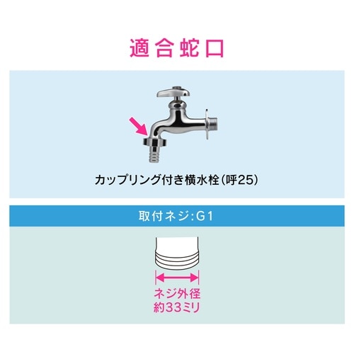 大きい水栓(呼25)にホースをワンタッチでつなぐためのジョイントセットです。 |