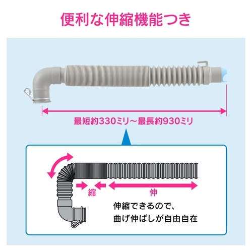 洗濯機に直接取付けられるL字型の伸縮式排水ホースです。 |